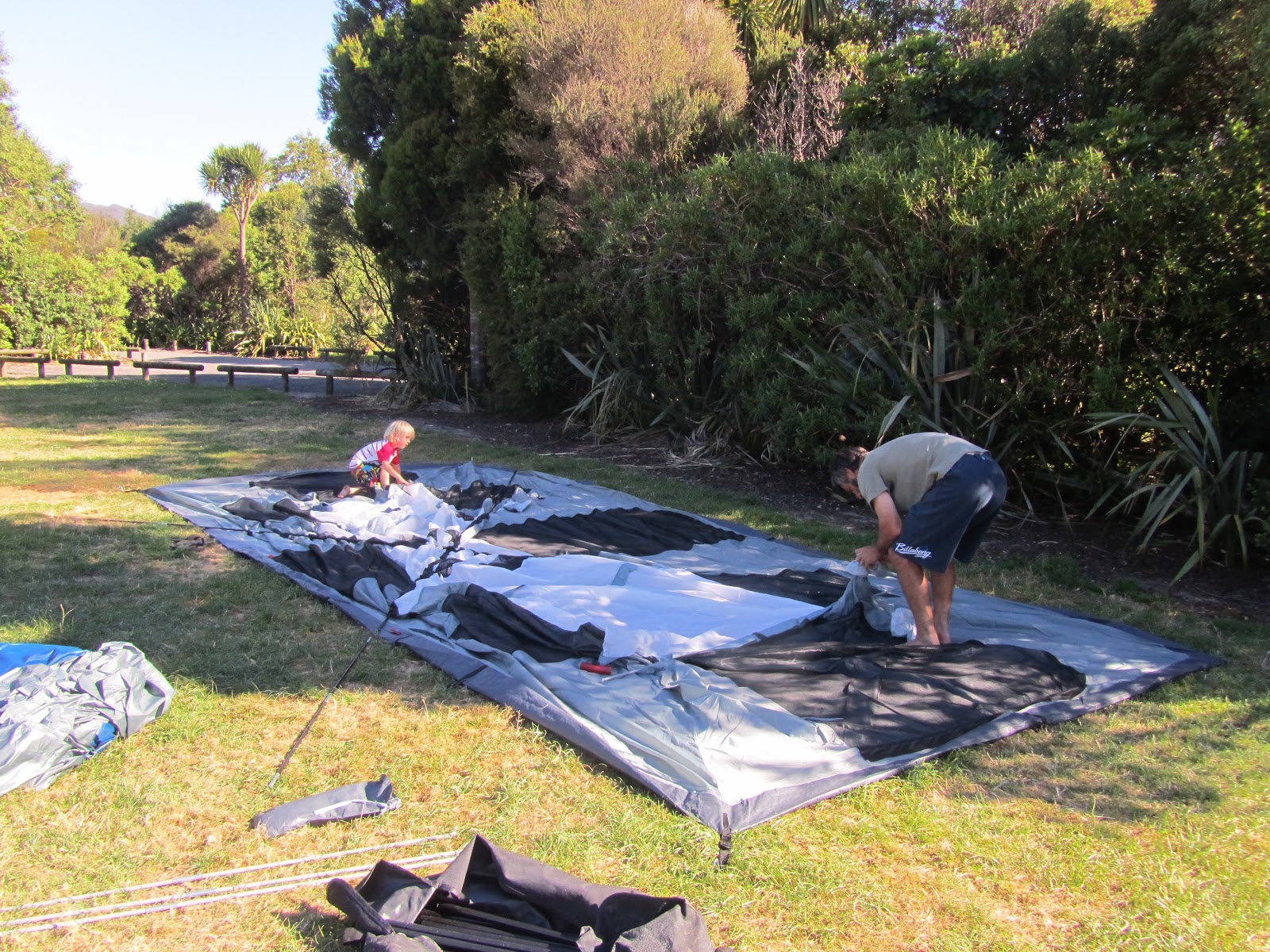 This is me and Daddy putting up the tent.